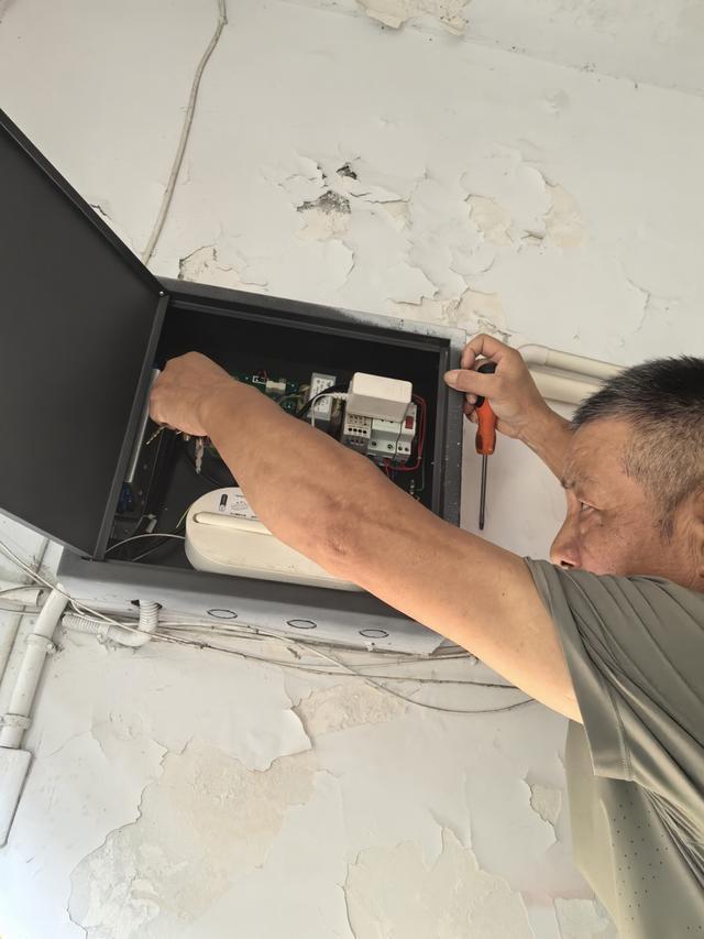 小区隆庆物业胡经理进一步补充道,当时是近两个月前的一天下午,小区群突然“炸锅”,居民们都反映用密码开不了门,物业只能将大门打开抵着,再逐一给门禁系统作断电处理。72号楼前,一名物业的维修人员赶来给“漏网”的门禁断电,只见他踩着自行车后座撬开了门内墙上高处的一个电箱,将插在电路板上的插头断开。记者留意到,电箱内还放有一个“网关设备”,与门禁系统相连。